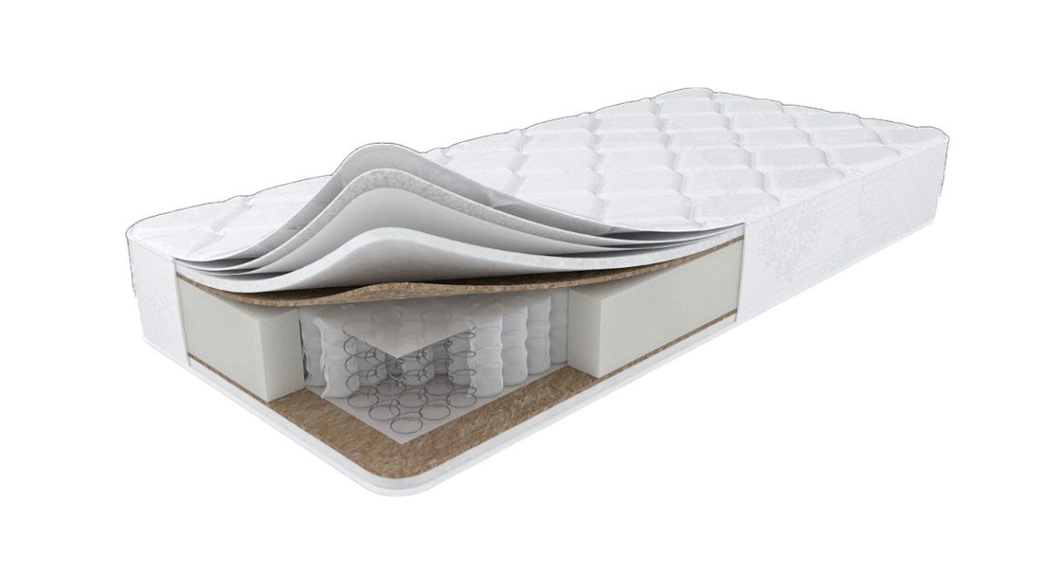 Трикотаж, синтепон 170 г/м2, спанбонд, Би-кокос 10 мм, ППУ 20 мм, TFK Н=140 мм, короб ППУ 60мм
